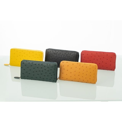 価格が高騰してる中、贅沢仕様のオーストリッチ財布。オーストリッチの風合いを生かす為シンプルなデザイン。近年、原皮の価格高騰の為、価格を安くする為に表面、後ろ面だけのハーフポイントや合成皮革を使い価格先行の商品が多く売られている中、今回提案する商品はクイルマークを「表面」だけでなく「裏面」にも贅沢に使ったフルポイント仕様。