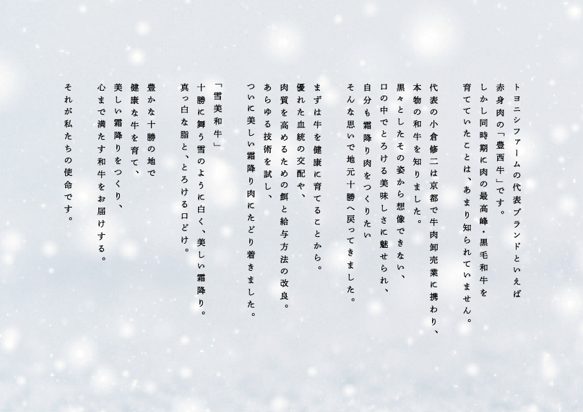 十勝に舞う雪のような美しい霜降り。真っ白な脂ととろける口どけ。