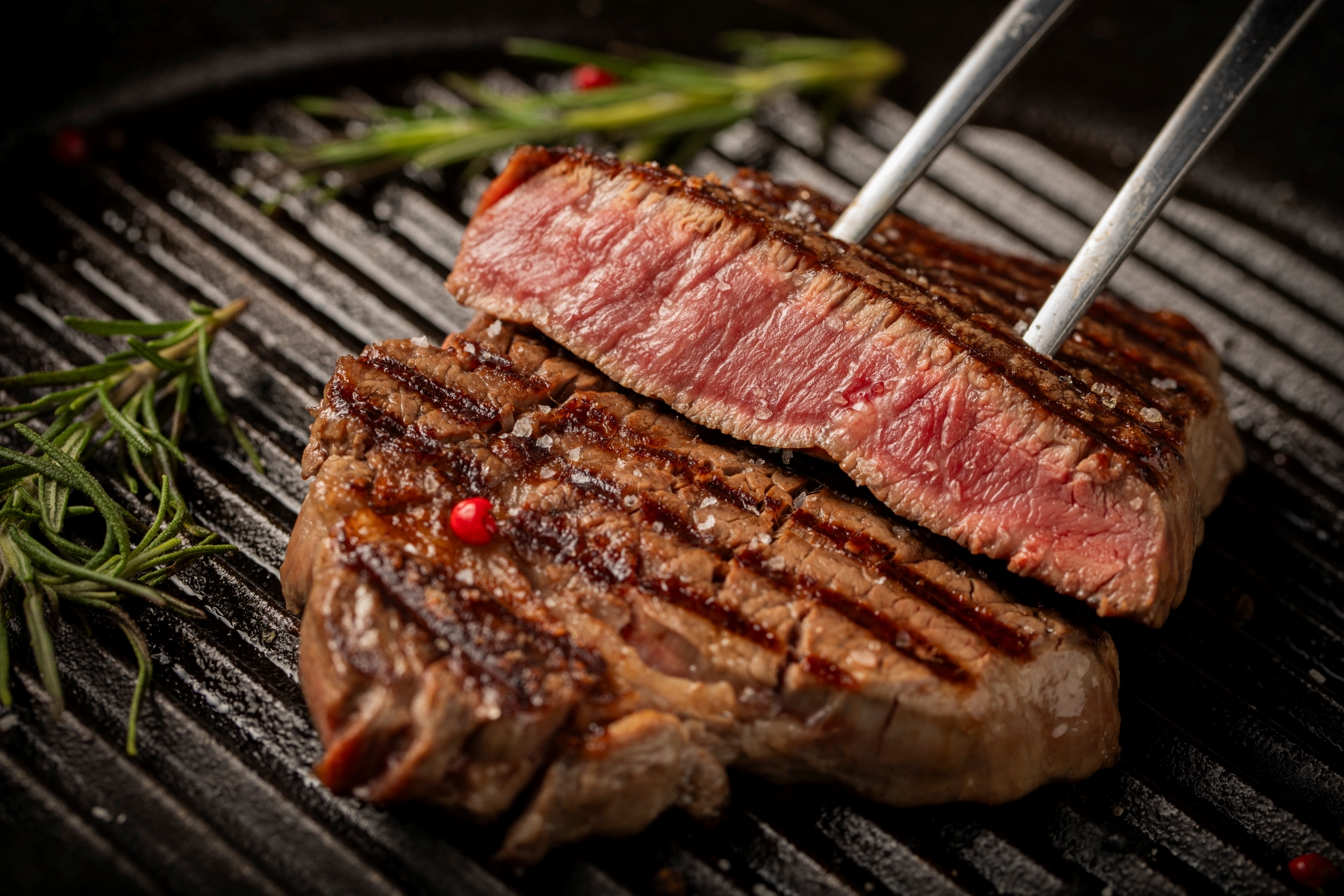 サシがきれいに入ったトヨニシファームの雪美和牛モモステーキです。