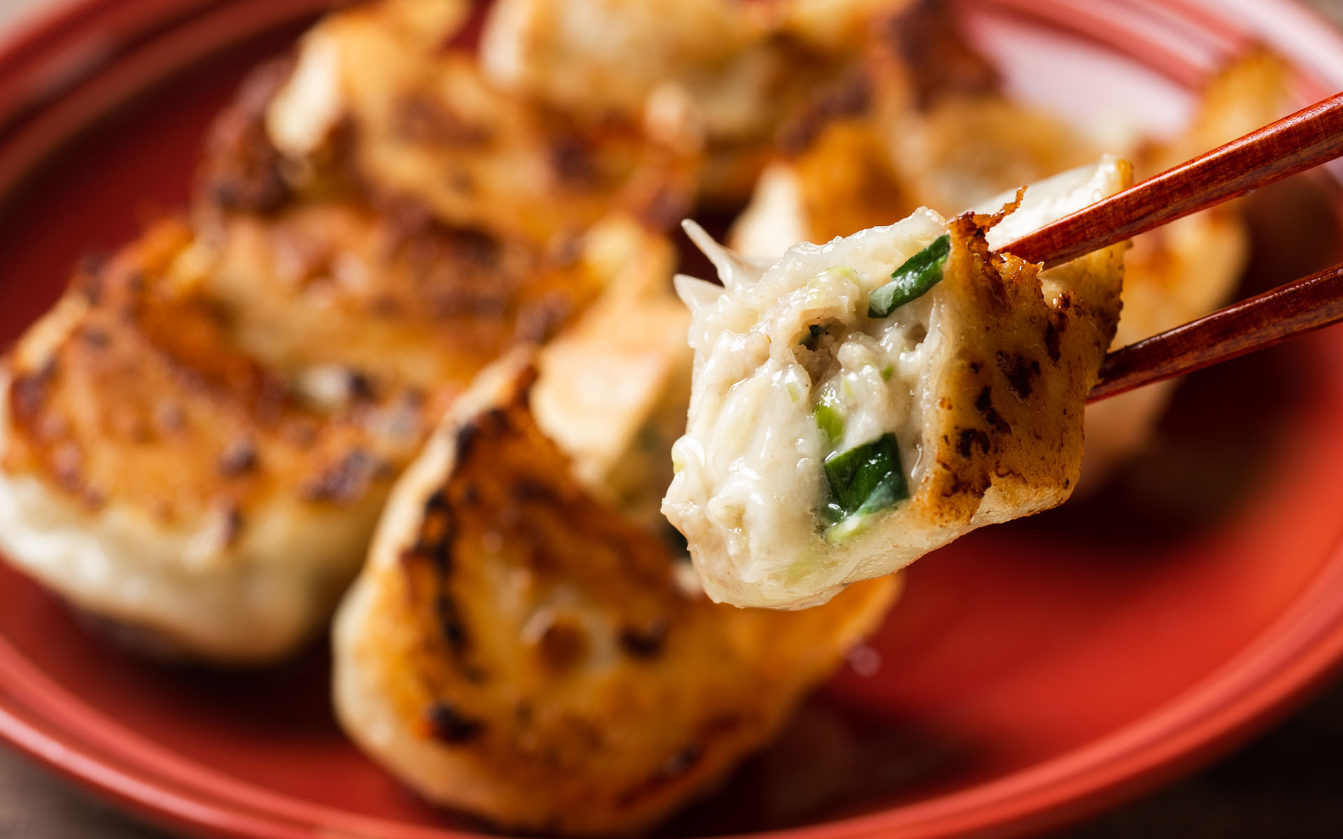 【行者にんにく餃子】 野菜(キャベツ、行者にんにく、生姜、にんにく)、豚肉、砂糖、食塩、 胡麻油、香辛料、オイスターソース、皮(小麦粉、でん粉、植物油脂、食塩) 調味料(アミノ酸等)、炭酸Ca、増粘剤(加工でん粉)、カラメル色素、 香辛料抽出物、(一部に豚肉・小麦・ごま・大豆を含む) |