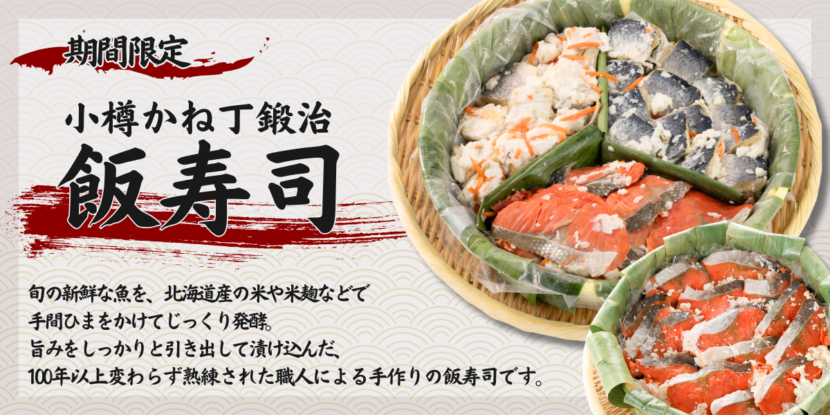 旬の新鮮な魚を北海道産の米、米麹などで手間ひまをかけて、じっくり発酵。旨みをしっかりと引き出して漬け込んだ、100年以上変わらず熟練された職人による手作りの飯寿司です。