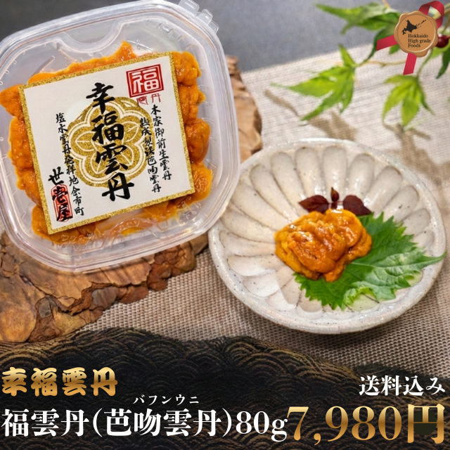 幸福雲丹 福雲丹(バフンウニ) 80g 販売価格: 7,980円(税込み) 会員価格 (税込み) 通常価格 (税込み) 在庫 カテゴリー 海鮮・魚介類 メーカー 株式会社 世壱屋 キャンペーン 7,000円~ 北海道が認定!「北のハイグレード食品」特集 食べて贈って笑顔広がる 冬の特選グルメ 個別送料 0円 数量 - + カートに入れる ツイートする シェアする ご購入時のご注意 こちらの商品は、産地ごとに発送しております。 一部商品を除き、他商品と同時に購入することができません。お手数ですが、他の商品とは別々に購入をお願いいたします。 同時購入できる商品はこちら ※同時購入できない商品が含まれる場合、ご注文完了後に追加の送料が発生します。 ※同時購入商品数によっては、ご注文完了後に追加の送料が発生する場合がございます。 ※送料に変更がある場合は、追って訂正のご連絡をさせていただきます。 ハイグレードS 紹介商品北のハイグレード食品2025 受賞★幸福雲丹 福雲丹(芭吻雲丹) 80g★まるで生うに!濃厚な甘みに舌鼓! 福雲丹(バフンウニ) ◼️独自の「生うに熟成製法」生うに同様の風味・食感を保ったままの冷凍保存と、解凍後の身の崩れにくさを実現しました。◼️ミョウバン不使用生うにに近い状態で製造日より1年冷凍保存可能です。 ■ 美味しさの秘密は「生うに熟成製法」北海道のうにが最も美味しい「夏」の旬の味わいを、1年間そのまま閉じ込めることに成功しました。① 繊細な塩締めと熟成その日のうにの個体差を見極め、塩分濃度を微調整した塩水に漬け込みます。その後、ざるに上げてじっくりと水を切り「寝かせる」ことで、余分な水分を抜き、うに本来の濃厚な旨みを凝縮させます。② 輝く職人技ここが最大のこだわりです。解凍してもドリップが出て身崩れしないよう、わずかにスチームを当てて表面のタンパク質だけを固めます。中はレアな生食感を残したまま形を保つ、絶妙な温度と時間の調整は職人の腕の見せ所です。③ 鮮度を閉じ込める!瞬間冷凍形を整え手作業で並べたあと、一気に瞬間冷凍。ミョウバンに頼らず、獲れたての甘みと香りをそのまま封じ込めました。【オススメの食べ方】お寿司・ウニ丼まさに口に入れた瞬間、幸せに包まれる「幸福雲丹」をぜひご賞味ください。★ご注意ください★人気商品につきまして、注文から商品到着までは10日前後頂いております。沖縄・離島は別途送料が発生します。 商品詳細 内容量幸福雲丹 福雲丹(バフンウニ):80g 原材料生うに(北海道産)、食塩 生産・製造株式会社 世壱屋 賞味期限製造日から1年 配送方法宅配便(冷凍)詳細はこちら RECOMMENDED ITEMS こんな商品も買われています 幸福雲丹 幸雲丹(ムラサキウニ) 80g 6,700円(税込み) 幸福雲丹(ムラサキウニ/バフンウニセット) 12,000円(税込み)