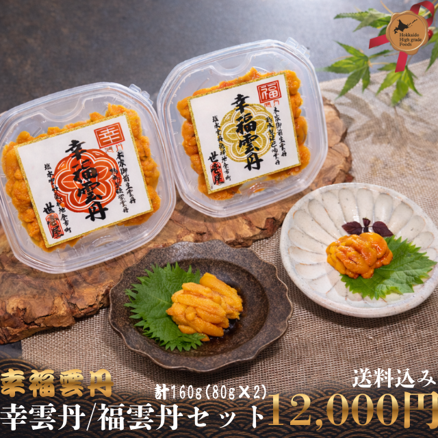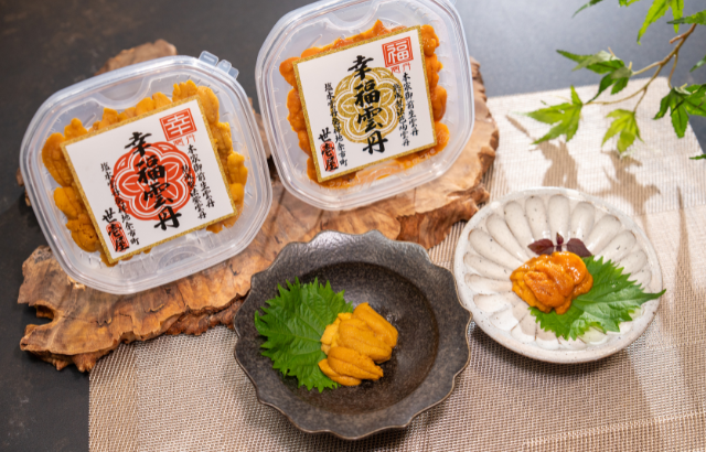 幸福雲丹(ムラサキウニ/バフンウニセット) 販売価格: 12,000円(税込み) 会員価格 (税込み) 通常価格 (税込み) 在庫 カテゴリー 海鮮・魚介類 メーカー 株式会社 世壱屋 キャンペーン 7,000円~ 北海道が認定!「北のハイグレード食品」特集 食べて贈って笑顔広がる 冬の特選グルメ 個別送料 0円 数量 - + カートに入れる ツイートする シェアする ご購入時のご注意 こちらの商品は、産地ごとに発送しております。 一部商品を除き、他商品と同時に購入することができません。お手数ですが、他の商品とは別々に購入をお願いいたします。 同時購入できる商品はこちら ※同時購入できない商品が含まれる場合、ご注文完了後に追加の送料が発生します。 ※同時購入商品数によっては、ご注文完了後に追加の送料が発生する場合がございます。 ※送料に変更がある場合は、追って訂正のご連絡をさせていただきます。 ハイグレードS 紹介商品北のハイグレード食品2025 受賞★幸福雲丹(幸雲丹/福雲丹セット) 計160g(80g×2)★ ⭐︎セット内容⭐︎【幸雲丹】まるで生うに!スッキリとした甘みに舌鼓!ムラサキウニ【福雲丹】 まるで生うに!濃厚な甘みに舌鼓!バフンウニ各80g×2◼️独自の「生うに熟成方法」 生うに同様の風味・食感を保ったままの冷凍保存と、解凍後の身の崩れにくさを実現しました。◼️ミョウバン不使用 生うにに近い状態で製造日より1年冷凍保存可能です。 ■ 美味しさの秘密は「生うに熟成製法」北海道のうにが最も美味しい「夏」の旬の味わいを、1年間そのまま閉じ込めることに成功しました。① 繊細な塩締めと熟成その日のうにの個体差を見極め、塩分濃度を微調整した塩水に漬け込みます。その後、ざるに上げてじっくりと水を切り「寝かせる」ことで、余分な水分を抜き、うに本来の濃厚な旨みを凝縮させます。② 輝く職人技ここが最大のこだわりです。解凍してもドリップが出て身崩れしないよう、わずかにスチームを当てて表面のタンパク質だけを固めます。中はレアな生食感を残したまま形を保つ、絶妙な温度と時間の調整は職人の腕の見せ所です。③ 鮮度を閉じ込める!瞬間冷凍形を整え手作業で並べたあと、一気に瞬間冷凍。ミョウバンに頼らず、獲れたての甘みと香りをそのまま封じ込めました。【オススメの食べ方】お寿司・ウニ丼 まさに口に入れた瞬間、幸せに包まれる「幸福雲丹」をぜひご賞味ください。★ご注意ください★人気商品につきまして、注文から商品到着までは10日前後頂いております。沖縄・離島は別途送料が発生します。 商品詳細 内容量幸福雲丹セット(ムラサキウニ/バフンウニ):計160g(80g×2) 原材料生うに(北海道産)、食塩 生産・製造株式会社 世壱屋 賞味期限製造日から1年 配送方法宅配便(冷凍)詳細はこちら RECOMMENDED ITEMS こんな商品も買われています 幸福雲丹 幸雲丹(ムラサキウニ) 80g 6,700円(税込み) 幸福雲丹 福雲丹(バフンウニ) 80g 7,980円(税込み)